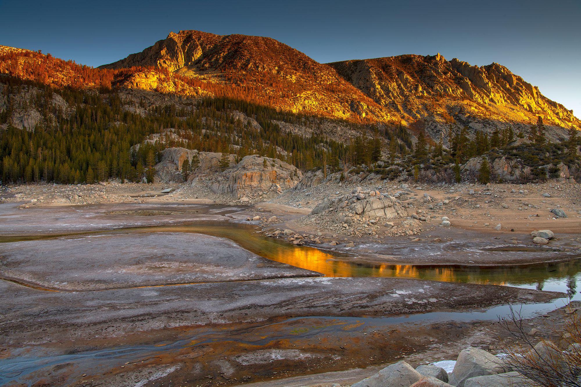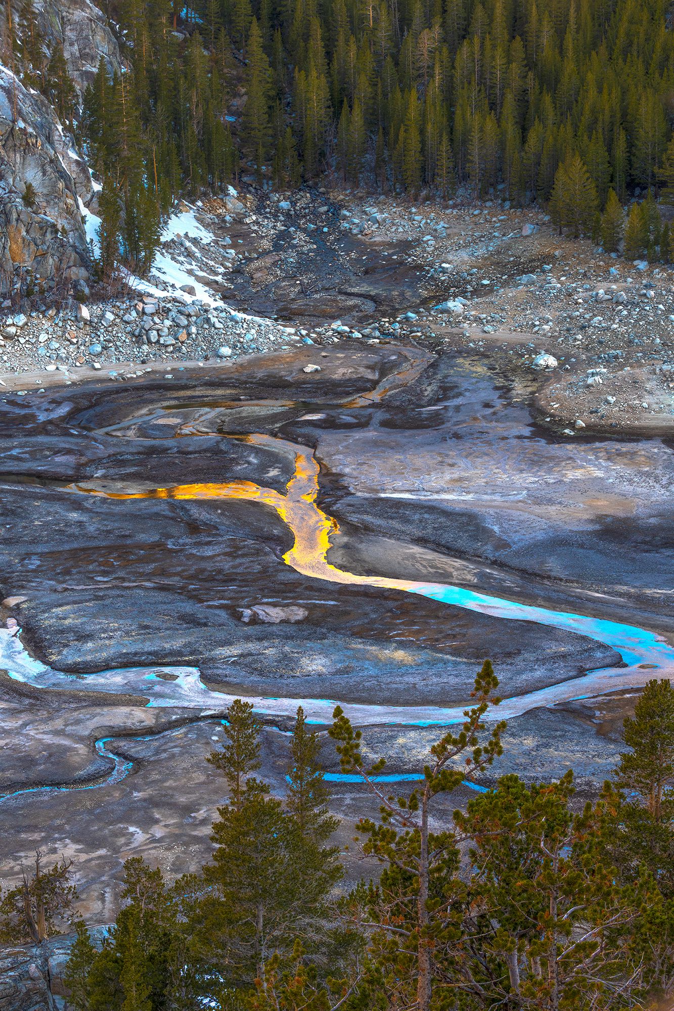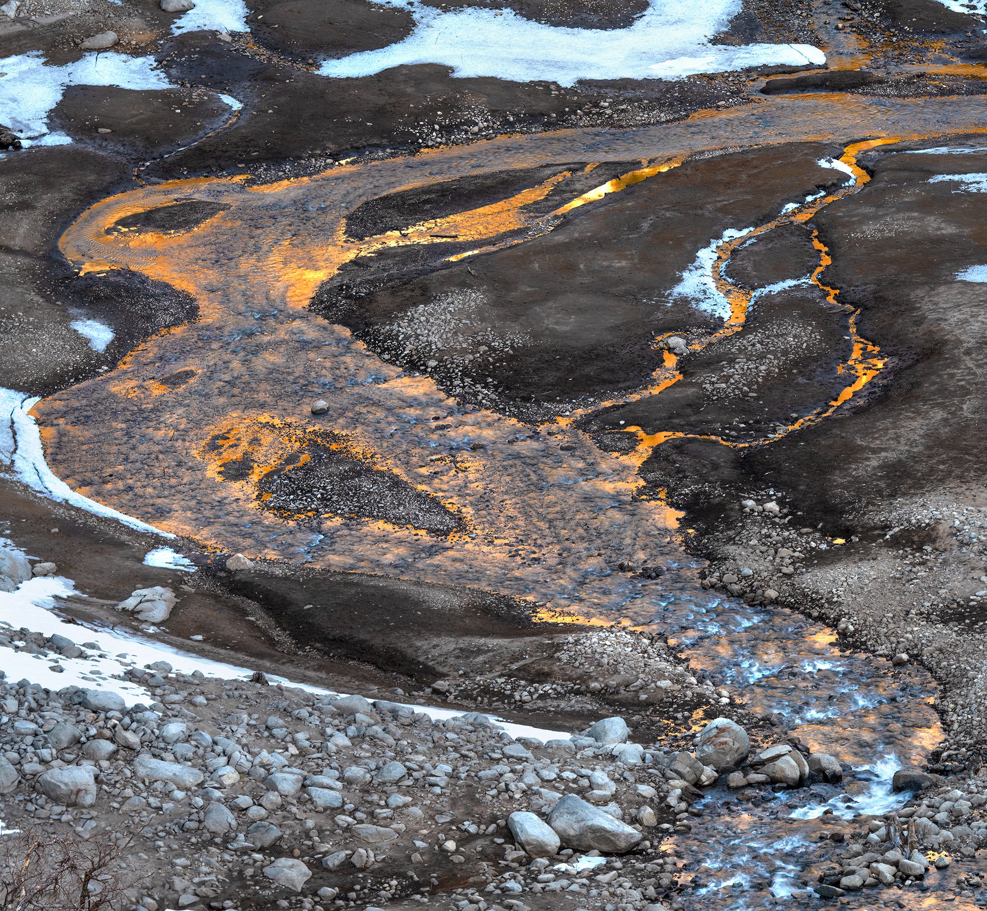 That was an awesome scene in and of itself. But things got crazy after that. I thought I was losing my mind. As the sun began to reflect the tops of the nearby mountains, the streams turned orange. It looked like lava. Seriously. It threw me off for a minute and I had to keep reminding myself that it was actually water with the illusion of lava. It was incredible. I felt like the great photographer and explorer Galen Rowell when he first saw Horsetail Falls in Yosemite being backlit during a February sunset. Light has the ability to take an already great moment and turn it into a spectacular one.