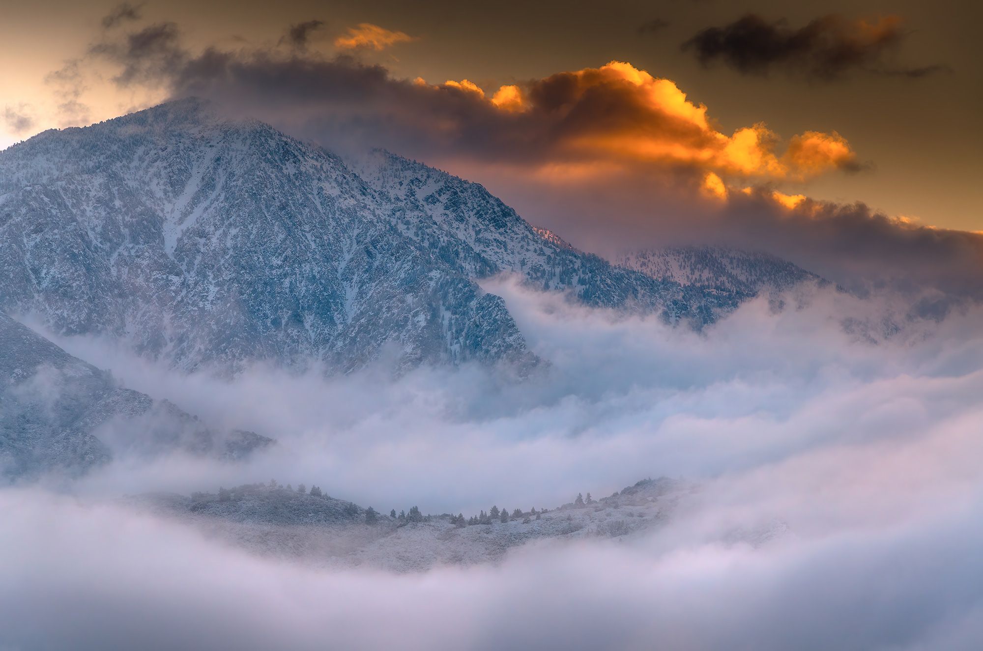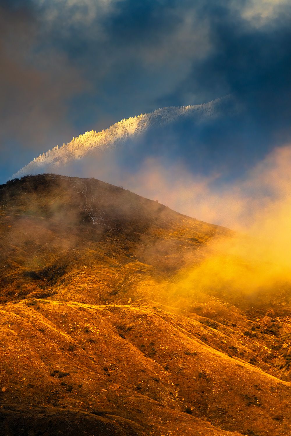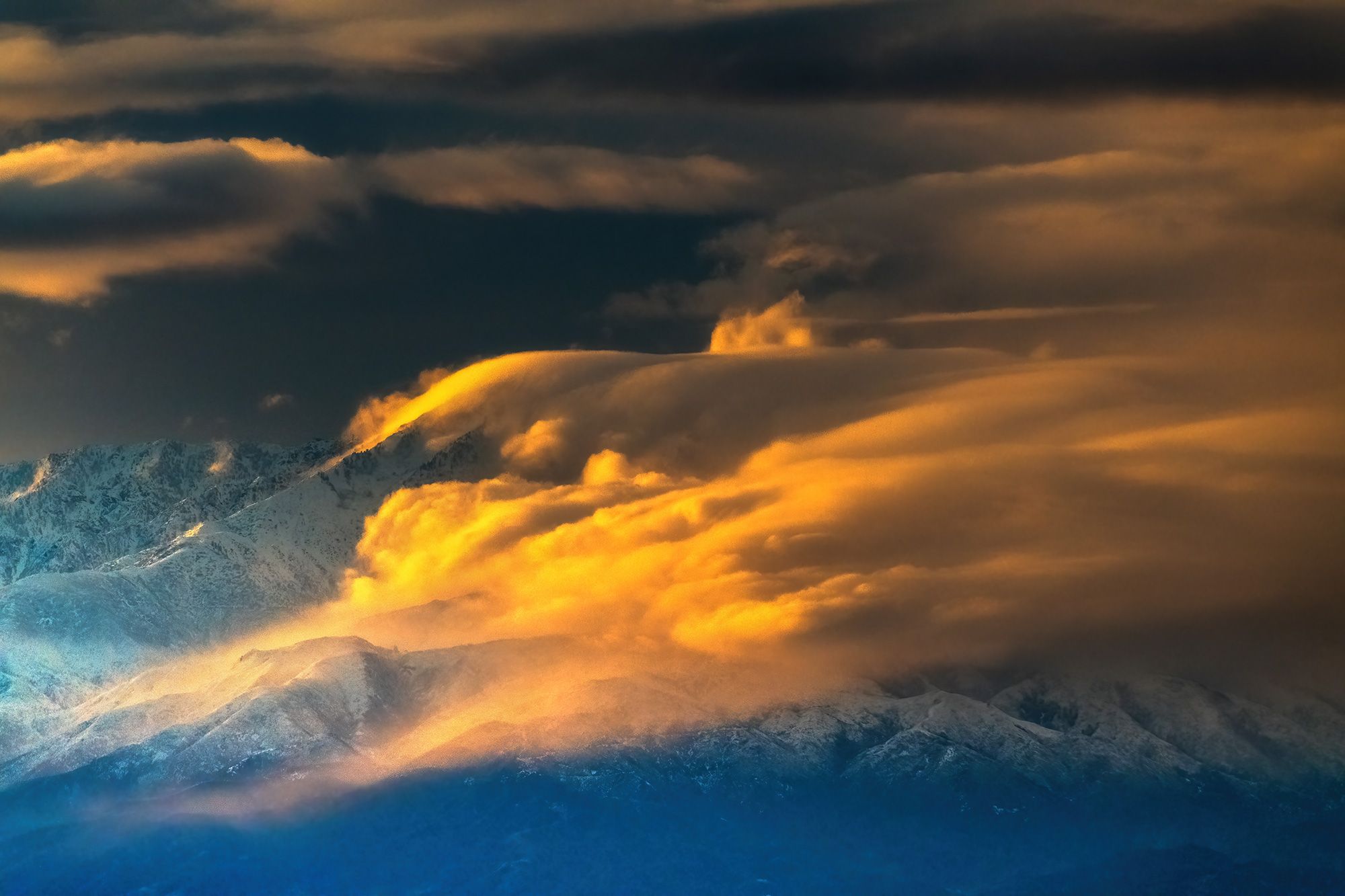 From 2019 - There was a recent storm that had passed through. It lasted about 3 days. As sunset approached, the clouds began to break up a bit and started giving a glimpse to the Baldy range in California. There were high winds in the area that began sculpting the clouds just over the mountaintops. I found an open area, and photographed the scene for about 2 hours until the sun had completely set. This image was part of the Official Selection in the 2022 International Photography Awards.
